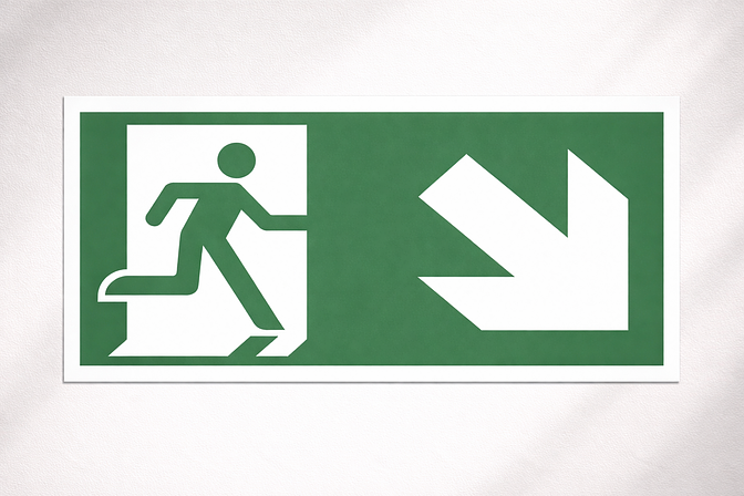 Rømningsskilt - Nødutgang ned og til høyre